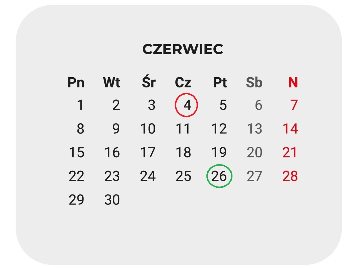 Zakończenie roku szkolnego 2026 - 26 czerwca, Boże Ciało - 4 czerwca, niedziela handlowa - 28 czerwca